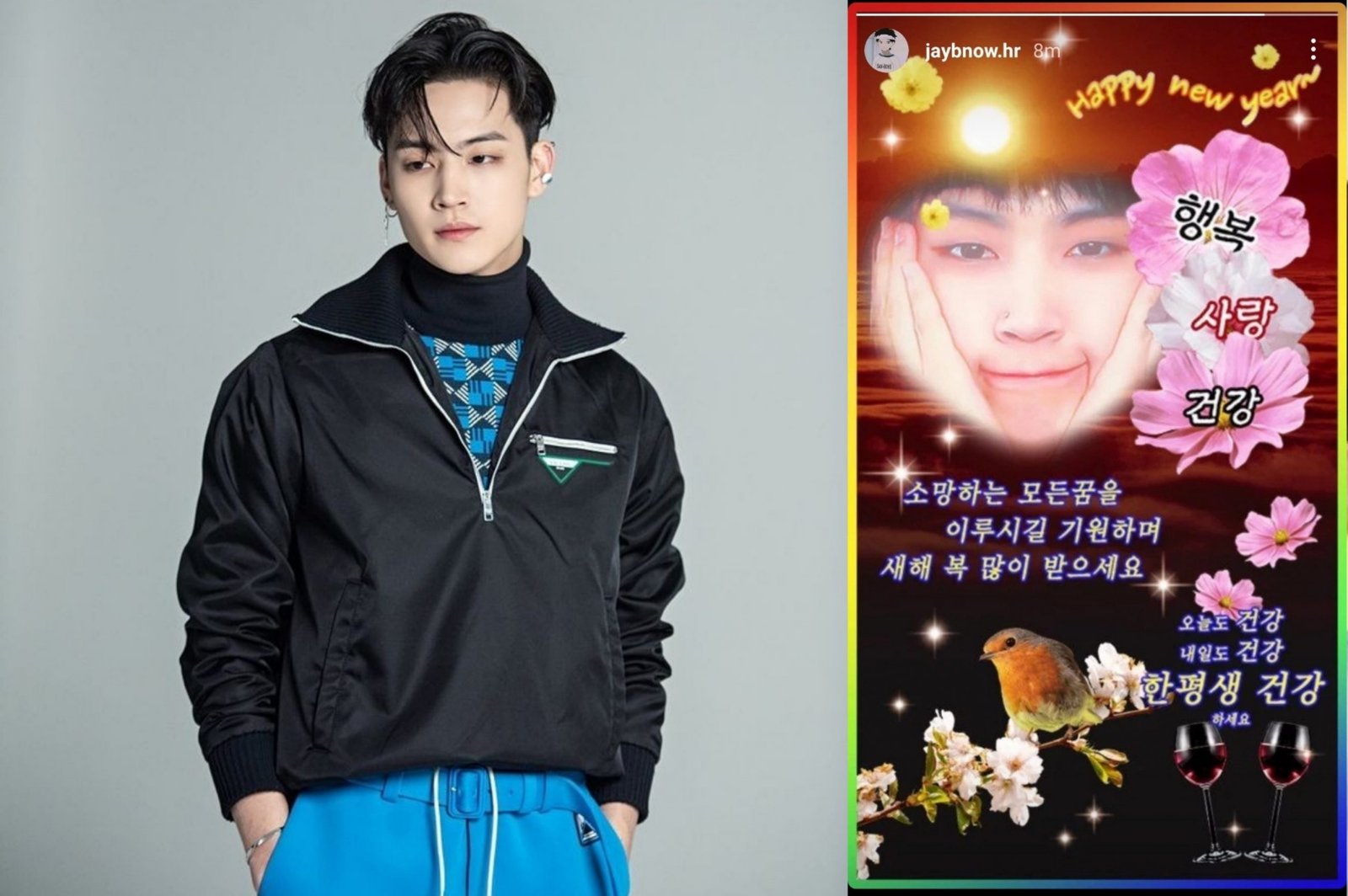 Gaya edit foto JB buat penggemar tertawa karena dirinya yang mandiri dengan mengedit foto nya sendiri ditambah dengan tulisan “Selamat tahun baru..